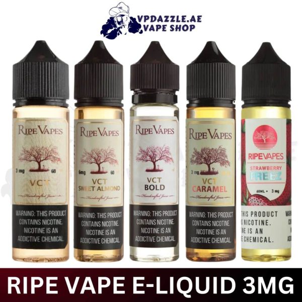 Ripe Vape VCT E-Liquid 60ml all Flavor 3mg buy in Dubai, UAE, Emirate Mall, Dubai Mall, Marina mall, Downtown, City Walk, Marina, Jumeirah, Palm Jumeirah, Bluewaters, AL Barsha. Abu Dhabi, Dubai, Sharjah, Ajman, Umm Al-Quwain, and Fujairah, while the seventh emirate, Ras Al Khaimah.