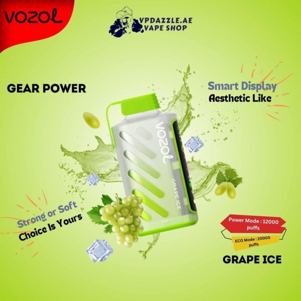 - A wide range of exclusive Vozol Gear Power 20000 Puffs flavors include Blue Razz Ice, Grape Ice, Cool Mint, etc.